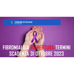 INDENNITÀ REGIONALE FIBROMIALGIA (IRF) – ANNO 2023 Concessione contributo regionale per i cittadini residenti nel Comune di Ollolai alle quali è stata diagnosticata, nel corso del 2022, la FIBROMIALGIA RIAPERTURA TERMINI – SCADENZA 31 OTTOBRE 2023